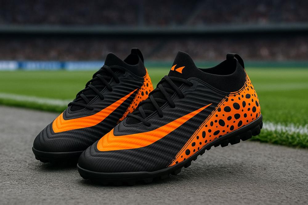 👟 بوت كرة قدم ولادي – أسود × برتقالي