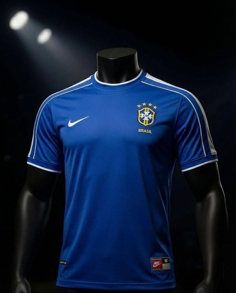 تيشيرت البرازيل 1998، قميص البرازيل كلاسيك أزرق، طقم منتخب البرازيل القديم،