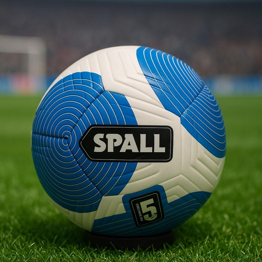 كرة قدم مقاس 5 من علامة SPALL الشهيرة، بتصميم عصري باللونين الأزرق والأبيض، مثالية للمباريات والتدريب على العشب الطبيعي أو الصناعي.