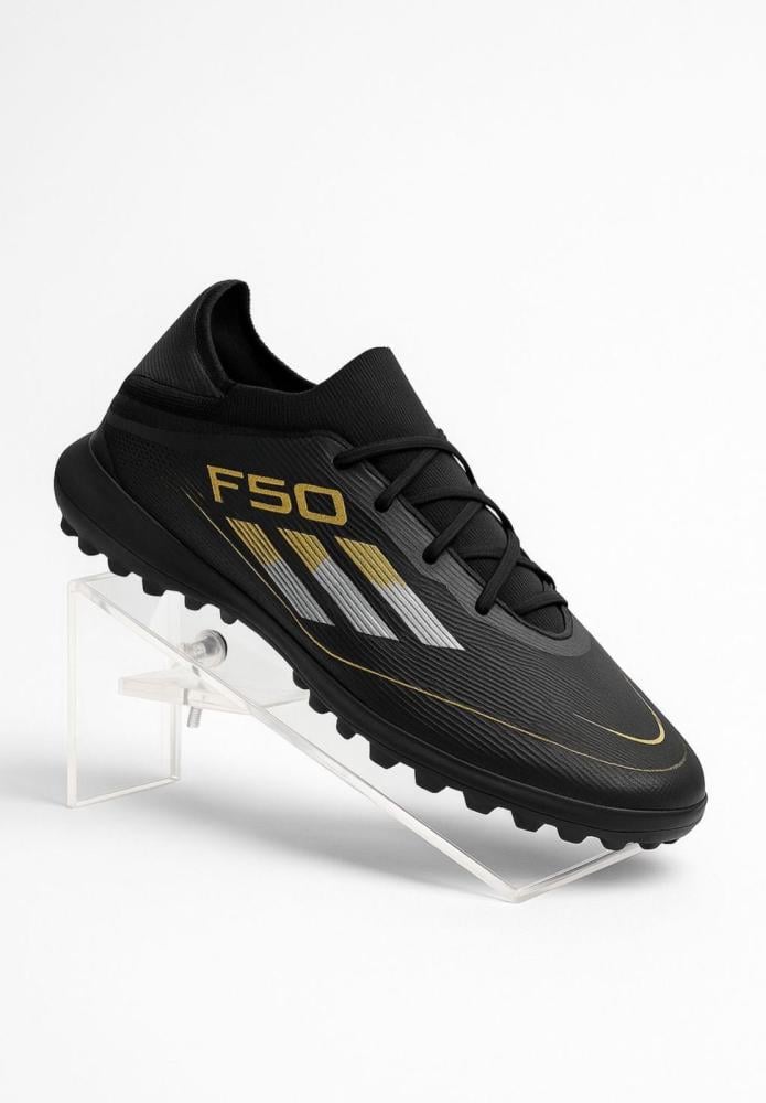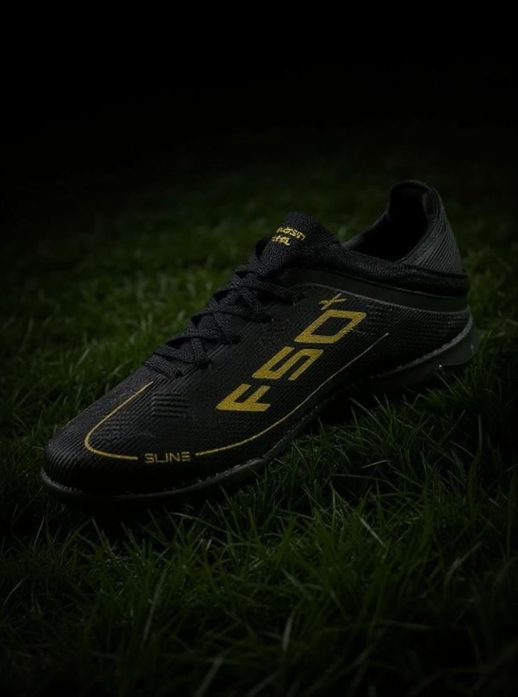 اجعل طفلك جاهزًا للتألق في كل مباراة مع بوت F50 المميز، المصمم ليجمع بين الخفة، الراحة، والثبات. تصميمه باللون الأسود مع لمسات ذهبية يمنحه مظهراً احترافياً يلفت الأنظار.