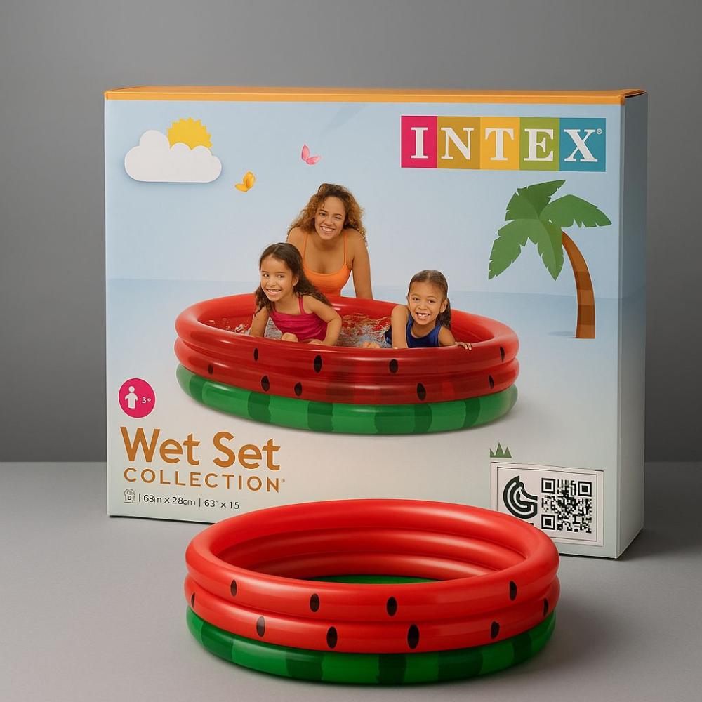 استمتع بلحظات منعشة في الصيف مع هذا المسبح القابل للنفخ بتصميم البطيخ المميز من مجموعة Intex Wet Set. تصميمه المرح وألوانه المبهجة تجعله الخيار المثالي لإضافة أجواء مرحة لحديقتك أو فناء منزلك.