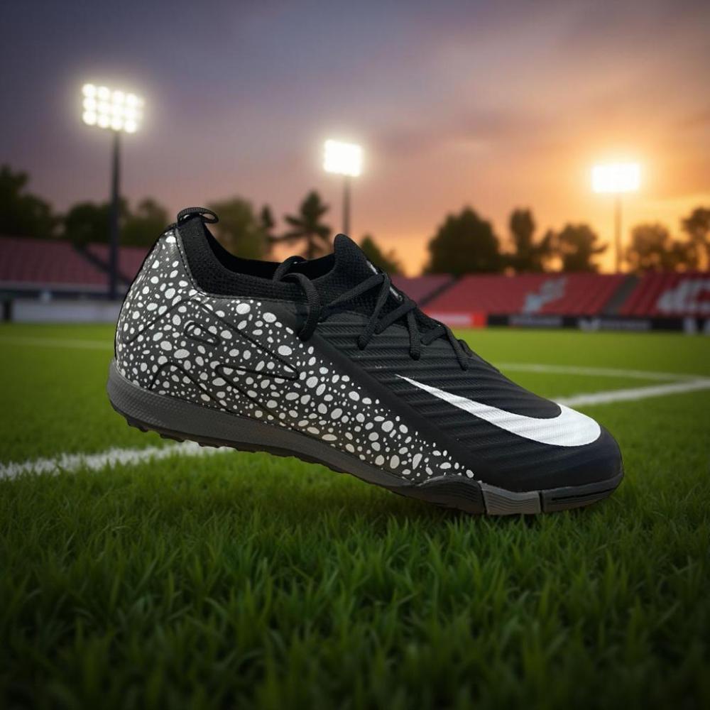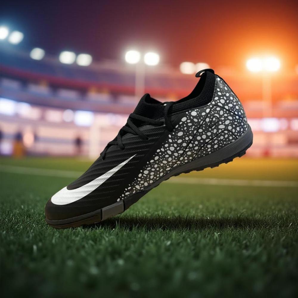 أطلق طاقة طفلك الكروية مع هذا البوت الرياضي الأنيق الذي يجمع بين الراحة، الثبات، والمظهر العصري. تصميم باللون الأسود مع تفاصيل بيضاء منقطة يمنح لمسة مختلفة ولافتة للنظر داخل الملعب.