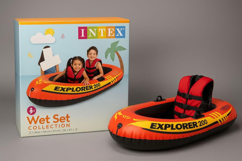 استمتع بمغامرات ممتعة على الماء مع قارب السباحة القابل للنفخ من INTEX – موديل Explorer. تصميم عملي وآمن يجعله مثالي للأطفال للاستكشاف واللعب في المسبح أو على الشاطئ.