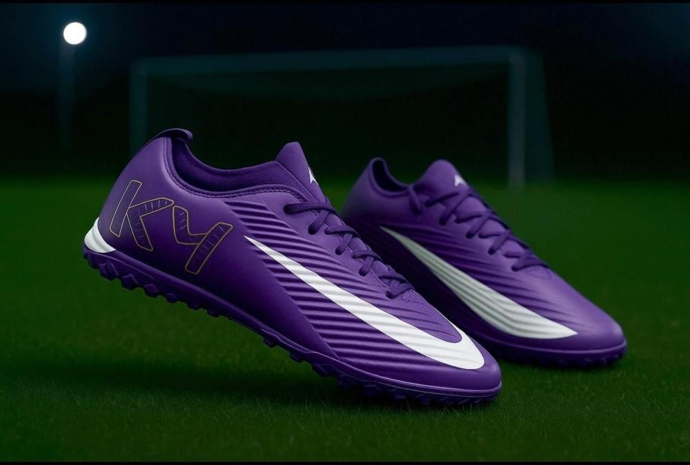 اجعل طفلك يلمع في الملعب مع بوت كرة القدم الولادي بتصميمه العصري باللون البنفسجي الجذاب مع لمسات بيضاء تمنح مظهراً احترافياً مميزاً. يجمع الحذاء بين الخفة والراحة ليمنح لاعبك الصغير تجربة لعب مثالية.